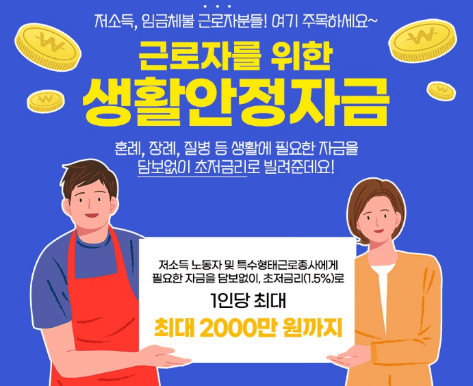 생활안정자금대출이란 말 그대로 개인의 생활 유지와 안정을 위해 금융기관으로부터 대출받을 수 있는 상품이에요. 가령 긴급한 의료비 지출이나 예기치 못한 생활비 부족 등의 상황에서 활용할 수 있답니다. 대출 한도도 최대 2천만 원 수준으로 상당히 높은 편이죠.